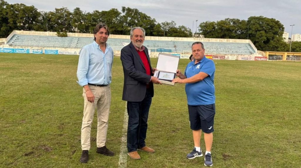 En representación de nuestra entidad, Luis Bononato recogió una placa conmemorativa entregada por los dirigentes del club, con su presidente Rubén González al frente.